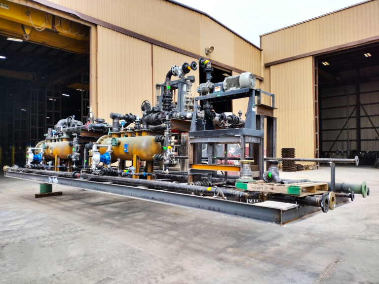 Each packaged system combines ASME pressure vessels and API-compliant tanks with in-house fabricated piping, manifolds, structural skids, instrumentation, and internal coatings into a single lift-ready module. Factory acceptance testing, hydro-testing, blasting, painting, and quality assurance are completed prior to shipment to ensure installation-ready delivery and reliable startup. Skid designs are engineered for efficient transport and rapid connection in the field, with options for integrated walkways, platforms, and access structures.